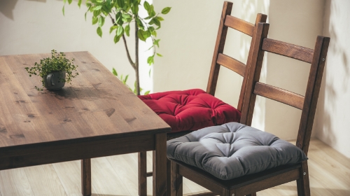 それぞれの職人が裁断、縫製、綿入れなどの繊細な作業を担当し、丁寧で温もりのある商品は、クッション生活ならではの特徴です。