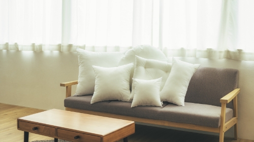 クッション生活では、国内の自社工場や提携工場で幅広いアイテムを手作業で生産しています。